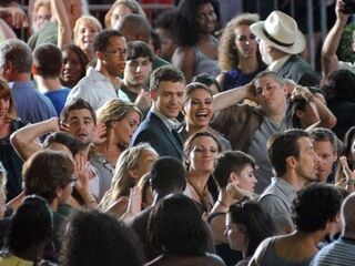 [Mila Kunis and Justin Timberlake, unfeeling Patrician jerks, film Gawker's latest favorite movie "Friends With Benefits" in Times Square last night. Image: Splash]