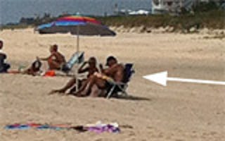 Fortunately, the wonders of technology allow us to zoom in. Is the nice bikini lady one of Biden's Secret Service agents? [Click photo to enlarge]