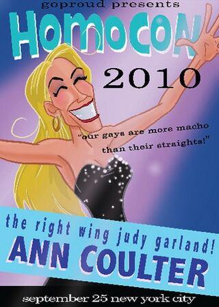 The gay conservative group GOProud — whose platform is essentially "cut taxes, while being gay" — is hosting a party called "Homocon 2010" with Ann Coulter, "The Right Wing Judy Garland." Fun! But isn't Ann Coulter mean to gay people?