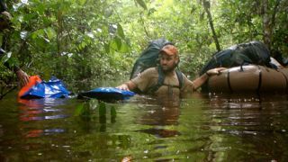Along the way, Stafford has seen huge anaconda snakes, had his gear and toes eaten by leafcutter ants, and suffered through illness. He caught and ate piranha and bought dry foods from villages in the jungle. The trip has cost about $100,000, which Stafford covered by taking on corporate sponsors and receiving donations. At night he would download episodes of The Office to his satellite phone. It's a remarkable feat, and some of the videos he's made are definitely worth watching. Learn how to properly smoke and eat a piranha, and see what a hungry anaconda looks like!