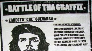 Today's most provocative message wheat-pasted onto a Manhattan building: why does Che get all the good endorsements? Mussolini just needs a better graphic designer. This is 100% true. Kids don't know who either of them are. Click to enlarge. [Copyranter]