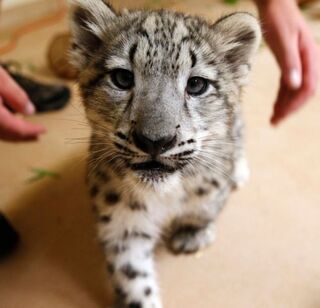 [This is a snow leopard cub at the Oklahoma City Zoo, investigating the photographer's camera. So cute! But yeah, it would actually eat you, for sure. Pic via AP.]
