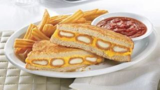 Click to viewThe Denny's Fried Cheese Melt is part of the company's new value menu revamp. For a bargain-basement price of $4, Fried Cheese Melt consumers will receive "four fried mozzarella sticks and melted American cheese grilled between two slices of sourdough bread. It is served with French fries and a side of marinara sauce." To be clear: Your breaded fried cheese will now be smothered in more cheese, sandwiched in more bread, and fried again. Concentric nesting dolls of deep fried cheese! It's a thing of wonder, really. [Restaurant News via Consumerist]