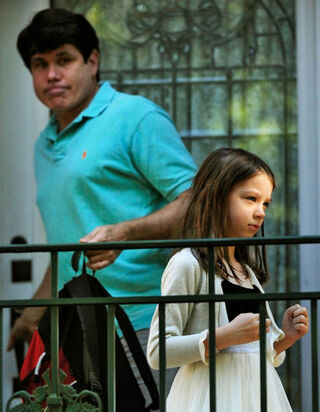 [Former Illinois Gov. Rod Blagojevich's daughter Annie looks like she's about to go toe-to-toe with the paparazzi, who were staking out the family's Chicago house the day after Blago's near acquittal. Image via AP]
