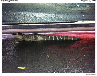 You know that urban legend about alligators living in New York City sewers? Well: A baby alligator crawled out of a storm drain and took refuge under a Datsun in Queens on Sunday. So, now all urban legends are true.
