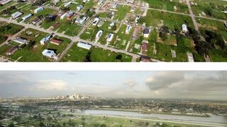 [New Orleans' Lower Ninth Ward looks a whole lot better today (top) than it did four years ago after Hurricane Katrina (bottom). Image via Getty]
