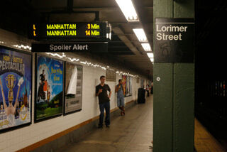 [Feel like the "mystery" of your wait time is erased by the LED displays the NYC Transit Authority is installing across the system? Thank Jason Eppink and Kevin Bracken of Newmindspace for this "spoiler alert" sign. Photo by Kristin Wardian.]