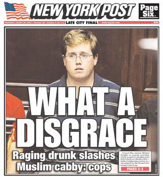 Oh, the New York Post thinks that guy who slashed a cabbie just for being a Muslim is a "Disgrace." That would only be ironic if the NYP had somehow helped foster a hysterical anti-Muslim environment in our city recently.