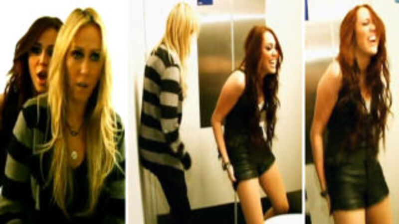 - Backstage before a concert, Miley Cyrus was wearing black leather booty shorts when her mother spanked her on camera. The vignette begins when a hyperactive Miley threatens to turn Tish Cyrus into child services, and Tish backhands her right butt cheek. Later, Miley runs into the corner and Tish chases her with a hairbrush. More spanking. "Do it again," Miley murmurs. "Just kidding." Far more disconcerting than their quasi-sexual banter (which sounds worse than it looks) is seeing Miley's "cool mom" in her element. I thought Tish was a back-up dancer or teenage friend at first: She has hair-extensions down to her butt and wears more makeup in daily life than her daughter wears on stage. She may share a makeup artist with Taylor Momsen. [HuffPo]
