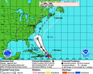 Hurricane Earl is "gathering strength" off the coast of Puerto Rico, and may send squalls all the way to Maine this week. Earl has kindly agreed to leave the Gulf coast alone, though, because it's got enough to deal with.