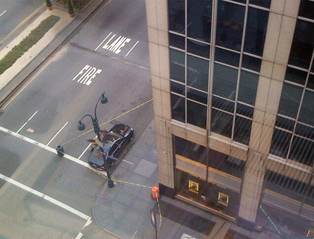Tip! "There is some sort of bomb scare on 51st & park. They closed down the street and put police tape around this sweet black Mercedes. They also blew out the tires. We are not aloud [sic] to leave the building."