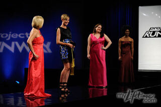 Last night the challenge was to take a bridesmaid dress and reconfigure it into a new outfit that would be modeled by the woman who wore the dress in the first place. This is the "real woman" challenge, but strangely only one of the girls was "real woman" sized. Maybe producers got sick of listening to the designers bitch and found "real women" who are still pretty damn skinny. Speaking of that, here are some other