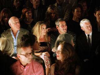 [Tech mogul Barry Diller, actress Sarah Jessica Parker, Bravo executive Andy Cohen and CNN anchor Anderson Cooper check out babes together at the Sunday Diane Von Furstenberg runway show. And is that Desiree Rogers across from them? Pic via Getty.]