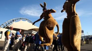 [Australians dressed in their traditional national garb celebrate the 10th anniversary of the Sydney 2000 Olympics at the Sydney Olympic Park Sports Centre. Pic via Getty.]