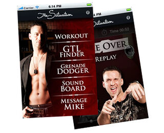 First of all, there is a GTL finder, so the phone will use your GPS location to find the nearest gyms, tanning salons, and laundromats/dry cleaners. No, seriously, that's really a feature. Once you're at the gym, it has a workout all planned out for you with photographic demonstrations by The Situation himself. While doing your cardio (how else are you gonna get a "Situation" going on in your midsection?) you can fiddle with the "Grenade Dodger" game or press the buttons on the sound board to hear The Situation's multiple catchphrases. And if you still have some extra time, you can even message The Situation himself. We have a feeling that you'll be answered by a robot that spits out something like, "Santa Clause is dead, dog," or "What can you say to someone who looks like Rambo, pretty much, with his shirt off."