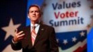 Oh and of course! Here's another famous Values Voter who'll take the stage: Bryan Fischer, the American Family Association's famous Director of Issue Analysis for Government and Public Policy. You may remember him from a couple of months ago when he suggested there be no more mosques in the United States, period. Here's another "big hit" of his from several days ago. Will he play it for the Values Voters Summit crowd today?