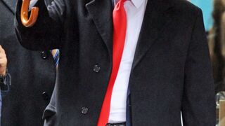 This is a picture of The Donald on the set of Wall Street 2: Did We Really Need a Sequel? last November. Notice something crazy going on in the crotch of his pants? Yes, it appears that The Donald has a stiffie. Maybe it's because he finds Michael Douglas attractive? Maybe it's his love for Oliver Stone films? Maybe his Cialis from the night before hadn't worn off yet? Maybe fame and appearing in movies actually arouses him? We don't know, but if this thing was popping up in a scene, we would sure think it was "distracting," too. But guess what? You'll still be able to see the deleted scene on the DVD—assuming you want to go blind.