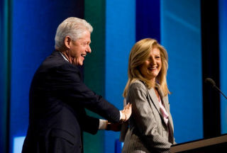 [Bill Clinton teases Web impresario Arianna Huffington at the final day of the Clinton Global Initiative. She gave a speech about ending poverty by not paying writers for content or something. Image via Getty]