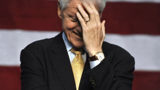 [An amused Bill Clinton campaigned for Democratic Senate candidate Richard Blumenthal in Connecticut today. Clinton is probably laughing because Blumenthal is battling wrestling queen Linda McMahon for the seat. Image via AP]