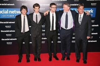 [Pic: Social Network Paris premiere, with (starting at left) Jesse Eisenberg, Andrew Garfield, Justin Timberlake, David Fincher and Aaron Sorkin. Getty Images.]