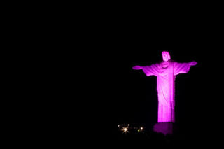 [The Christ the Redeemer statue in Rio de Janeiro, Brazil, was lit up in pink on Tuesday to raise awareness of the Pink Panther movies. No, wait, breast cancer. To raise awareness of breast cancer. Pic via AP.]