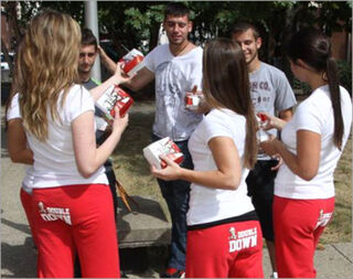 One is Sara Coleman, a 21-year-old senior at Colorado State, who majors in criminal justice. She says she already does promos for Anheuser-Busch and heard about the KFC promo from her mom.