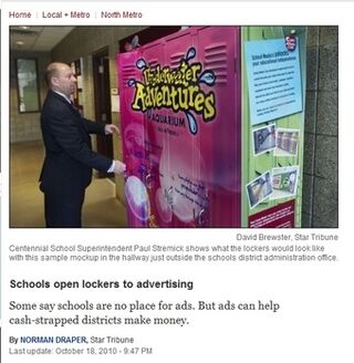 "In the spring of next year, we'll look at the revenue stream generated and make sure it wasn't a distraction to learning," [the superintendent of a locker-ad-having school district] said. "If there are problems, we're obviously not going to continue it, but if they become kind of a normal, everyday deal, it could just be part of the culture."