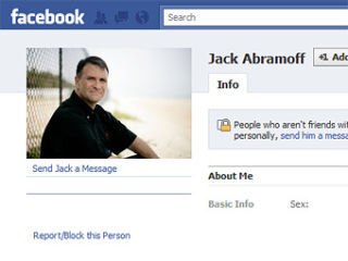 Washington's most famously corrupt (former) mega-lobbyist, Jack Abramoff, is gradually re-entering the public following his prison sentence. Last we checked in, he was on work-release at a Baltimore pizza place, and now he's on Facebook. We're still awaiting friendship confirmation.