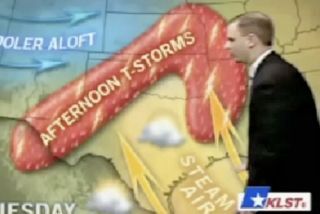Meteorologists at San Angelo, Texas' KLST station recently discovered a massive penis of thunderstorms preparing to barrel through west Texas and penetrate its tip into Mexico. Video of this red-hot Weather Penis forecast, below.