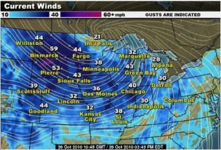 A cyclonic storm is currently bulldozing through the Midwestern US with wind speeds over 100 m.p.h., virtually shutting down the Chicago airport and triggering blizzards in North Dakota and tornado warnings across several states. Worst storm since 1975, they say.