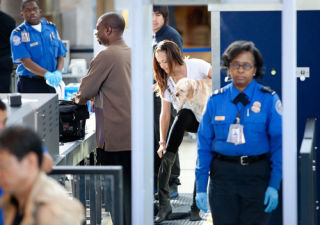 [Friday Night Lights actress Minka Kelly was passing through LAX on Tuesday, looking rather serene on her way to the plane, where, if past behavior is any indication, she totally freaked out about her dog.]