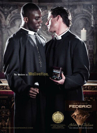 Italian ice cream maker Antonio Federici has been ordered by Britain's Advertising Standards Authority to stop running an ad featuring two "sexualized" priests about to kiss "passionately." Last month the company ran ads featuring a pregnant nun (also banned).