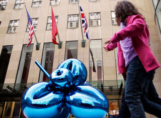 [An 11-foot-tall Jeff Koons' "Balloon Flower" sculpture is on display in front of Christie's in New York. It is expected to sell for around $12 million at auction in November. We should all become artists. Image via AP]
