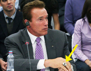 Let us now celebrate the fingers of Arnold. He couldn't manage California's budget, but the man can rock a signet like no other. Click any image to enlarge.