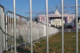 [The National Mall looks quiet, but wait until all the Jon Stewart and Steven Colbert fans storm D.C. for the "Rally to Restore Sanity And/Or Fear" tomorrow. Enjoy it, and that other thing that happens this weekend. Image via Getty]