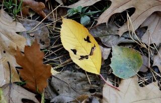 [This leaf, found in Leipzig, is the creepiest leaf you will see this year. Have a happy Mischief Night! AP Photo by Sebastian Willnow.]
