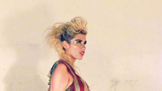 [Ke$ha, the illiterate pop star the music industry created from Lady Gaga's afterbirth, films a promo for self-proclaimed "pride anthem" single "We R Who We R." Updated caption inspired by OMG! Ponies! Image via Pacific Coast News.]