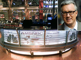 [Photo of Olbermann via Getty Images. Photo of MSNBC studios via Wikipedia]