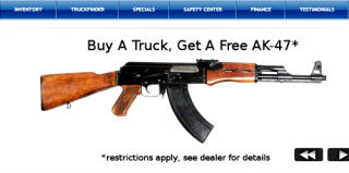 Nations Trucks in Sanford, Florida has come up with a clever promotional deal to sell used trucks: With every purchase comes a free AK-47 assault rifle! Says manager Nick Ginetta, "My buyer is absolutely a gun owner, no question." Great.