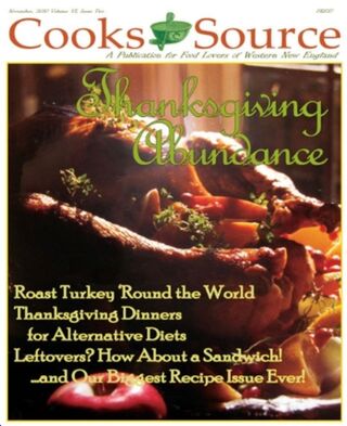 Thank you to all our readers, thanks to all our advertisers and writers... and to everyone who has been supportive and who has been a part of Cooks Source. To one writer in particular, Monica Gaudio, I wish you had given me a chance.