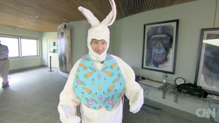 Last night, CNN's Anderson Cooper did a story about bonobo apes that can communicate. They ordered him to put on a bunny suit and, like a good reporter, he did. This treads the fine line between ridiculous and adorable.