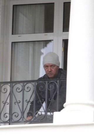 [Actor Kevin Spacey packs up his hotel room after a stay in France hosting a charity event for his foundation. Image via Bauer-Griffin.]