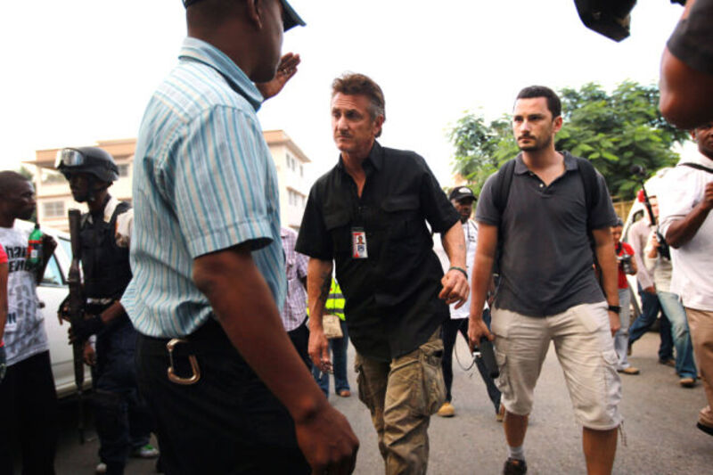 [Sean Penn walks through the streets of Port-au-Prince, Haiti presumably looking for Wyclef Jean-related irregularities during the island nation's presidential election. Image via Getty]