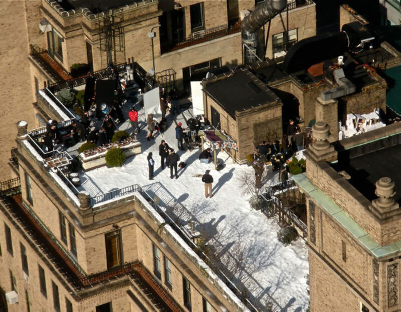 Actor Jim Carrey was filming Mr. Popper's Penguins on the roof of 480 Park Ave on Monday when a tipster in a neighboring building snapped this shot. Seen someone interesting? Email it to stalker@gawker.com or post it yourself to #stalker.