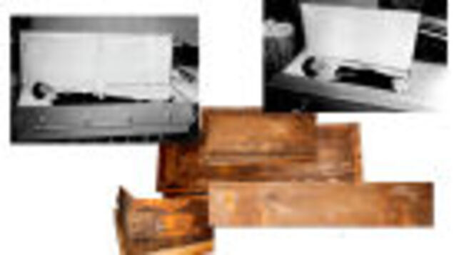 Oswald was buried on November 25, 1963 in Fort Worth, Texas. Oswald's widow, Marina, and brother, Robert, in 1981 had the body exhumed over a legal dispute to see if the body was actually that of a Russian intelligence agent who looked like Oswald. It wasn't, and Oswald was reburied in a new coffin. The Baumgardner Funeral Home, which handled Oswald's reinterment is selling the casket through Nate D. Sanders Auctions. The story, from the auction house:
