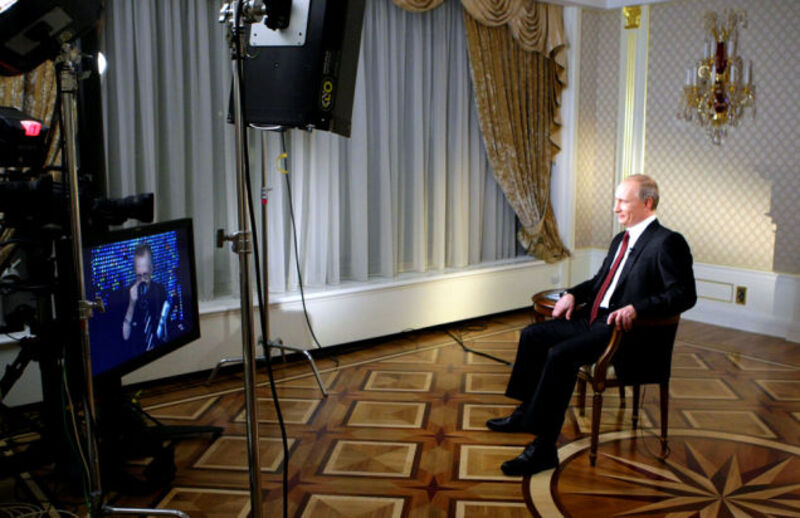 [Russian PM Vladimir Putin talks to Larry King about nukes, Wikileaks, America, and badassery, while denying he's a money-laundering mob boss. Image via AP]