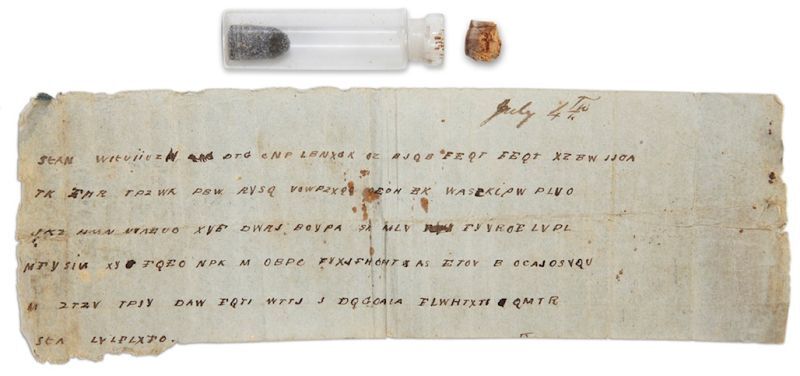 The message was sent in the small bottle you see above, weighted down with a bullet, possibly so it would have sunk in the river if discarded by a messenger. It had been in the Museum of the Confederacy for over a century before it was opened; and was originally thought to be a random collection of letters. Gaddy took a few weeks to decipher the code—"the Vigenere cipher, which involves shifting letters of the alphabet a set number of places." Maybe for his next project he can decipher why Southerners are so hung up on a war they started to defend what might be the single most despicable institution in the history of the world, and then lost!