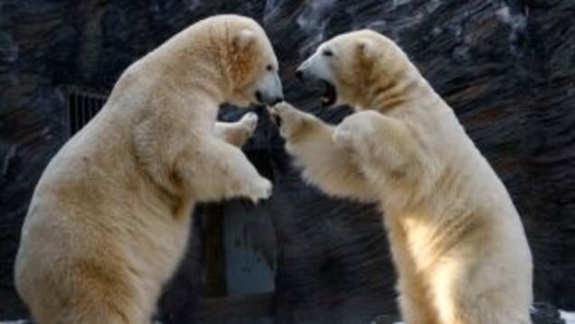 Bi PolarMax Read1/05/11 3:59amFiled to: Pic of the nightAnimalspolar bearsPragueCzech RepublicAppic25EditPromoteDismissUndismissHideShare to KinjaToggle Conversation toolsGo to permalink [Two polar bears fight at the Prague Zoo in the Czech Republic. Image via AP]Reply25 repliesLeave a reply