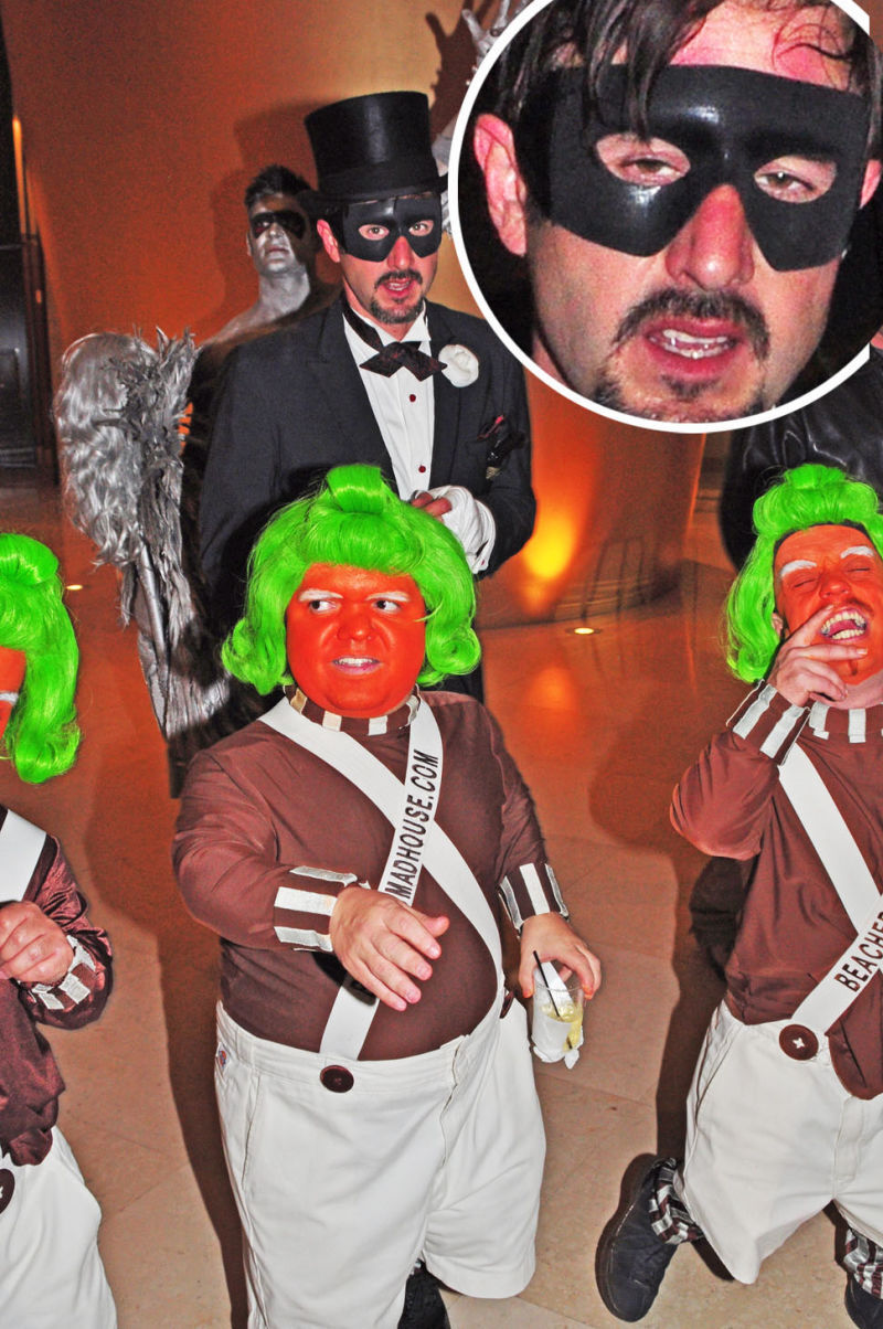 - Why David Arquette checked into the Betty Ford Clinic: "He busted his nose on the floor while trying to do 'the worm' at a trendy L.A. club." That happened around Christmas; in the following week, he continued to party, but insisted on wearing a "Lone Ranger-style mask" to hide his "swollen and bruised face." Here's a picture of him in Miami on New Year Eve's, wearing the mask and flanked by Oompa Loompas. (Does he have a thing for little people?) The next morning, he realized he was at rock bottom, and embarked on the most sobering New Year's resolution of all: Checking into the Betty Ford Clinic when Lindsay Lohan was still there. The average joe alcoholics at BFC must be so sick of this shit. [P6, image via Splash]