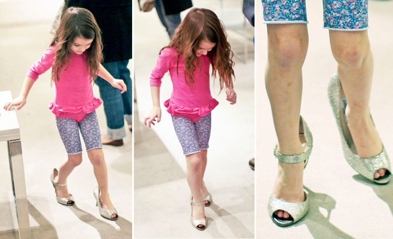 Suri Cruise, the only toddler in the world capable of "stepping out," hones her heralded fashion sense while shoe-shopping on Vancouver. See the immaculate daughter of Xenu clomp around in heels the way all little girls do, ahead.